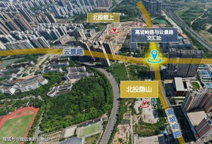 项目地处云景路与高坡岭交汇处。云景路作为凤岭北的发展“主干道”,汇聚了凤岭北代表性的大型生活、教育、休闲及商业配套。凤岭新兴商业大道高坡岭路,串联广西首个山姆会员商店、炬城星悦荟等全龄商业。周边万象城、会展航洋城、爱琴海城市广场等多元商业汇聚。于城市人居封面之上,看见繁华的山,隐于内心的静。