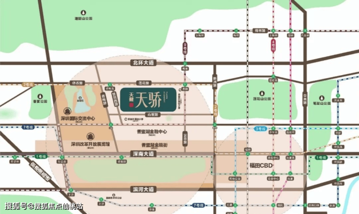 位处福田CBD、香蜜湖金融中心辐射区域,紧邻香蜜湖高端宜居豪宅区、香蜜湖金融街(建设中), 彰显独特的区位优势。