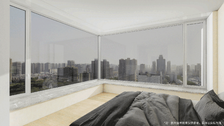 项目去除传统飘窗凸出结构,可以减少空间占用,让小户型视觉上更显宽敞。