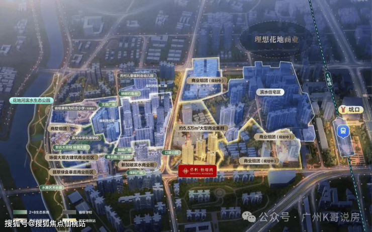 项目自身规划约40万㎡四大滨水商业街区,约700米处万科规划有18万㎡的理想花地商业,周边现有的有芳和荟购物广场,荔胜广百等商圈。