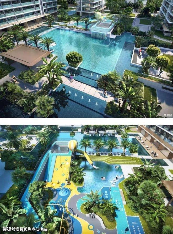 汲取曼谷四季酒店灵感:无边际泳池将奢华建筑与野奢景致自然相融,分区打造立体儿童泳池。