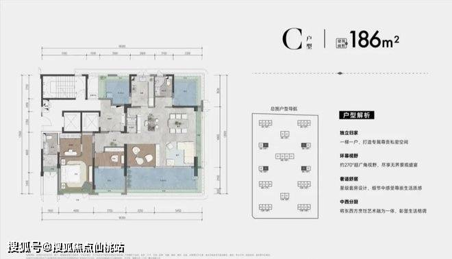建筑面积约:111-229平方米湾芯环幕大平层