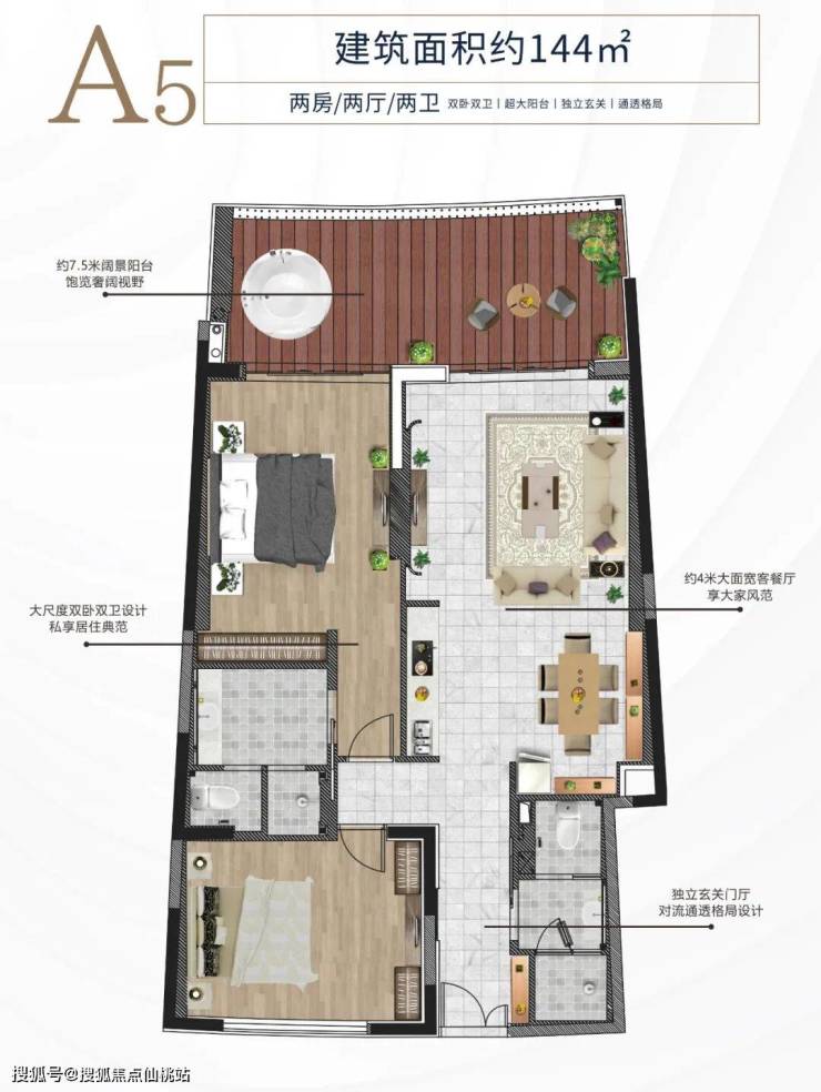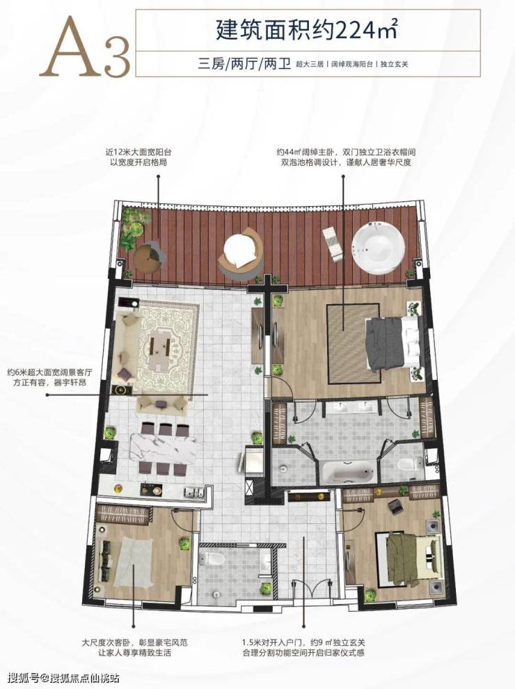 B1户型约186-209平方米 两房两厅三卫大阳台