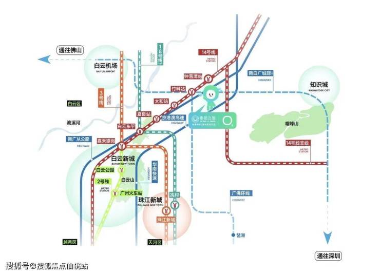 项目位于地铁14号线钟落潭站旁,一期距离大概900米,二期大约500米。