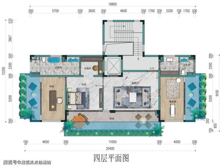 四层:(建面约:160㎡,赠送面积:45㎡)