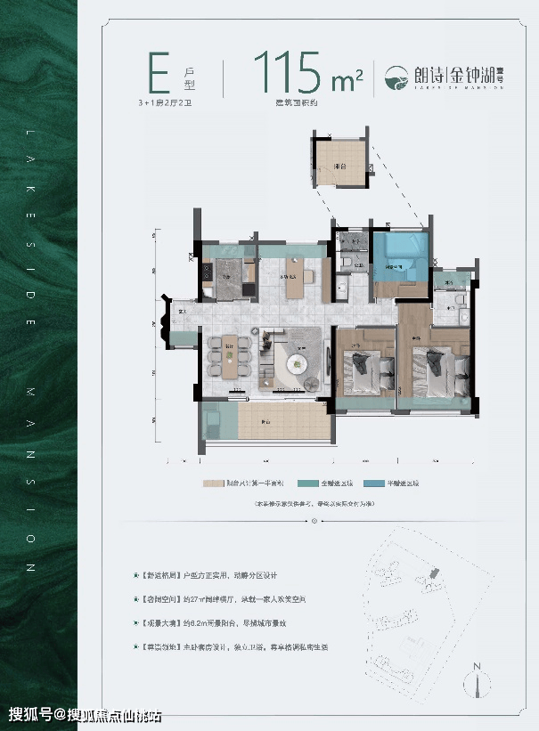 户型设计方面,从94㎡超高实用率的明星小面积户型到167㎡具备双套房的3+1房户型,各有特色。