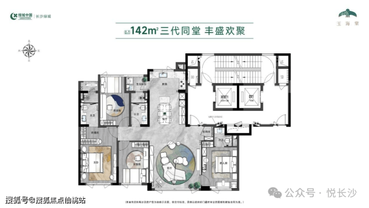 户型方面,建面约142㎡优选户型亮点显著:约15.4米南向四开间引光通透,双主卧套房保障私密与仪式感,可变X空间适配家庭成长需求,提升实用性。2#栋楼下“春知学堂”(以英国威斯利花园为灵感)服务儿童成长,麓山国际洋湖实验学校、医疗配套均近在咫尺。凭借“内外兼修”。