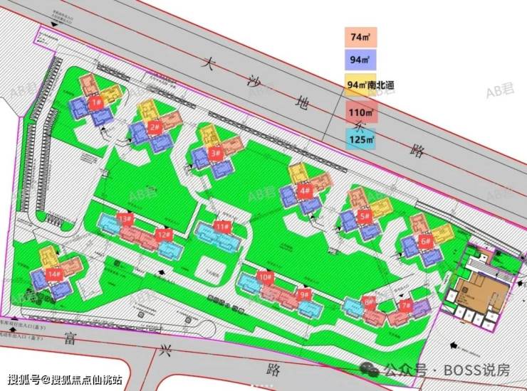 产品类型:建面约 74-94㎡高层三至四房、建面约 110-125㎡板式小洋房
