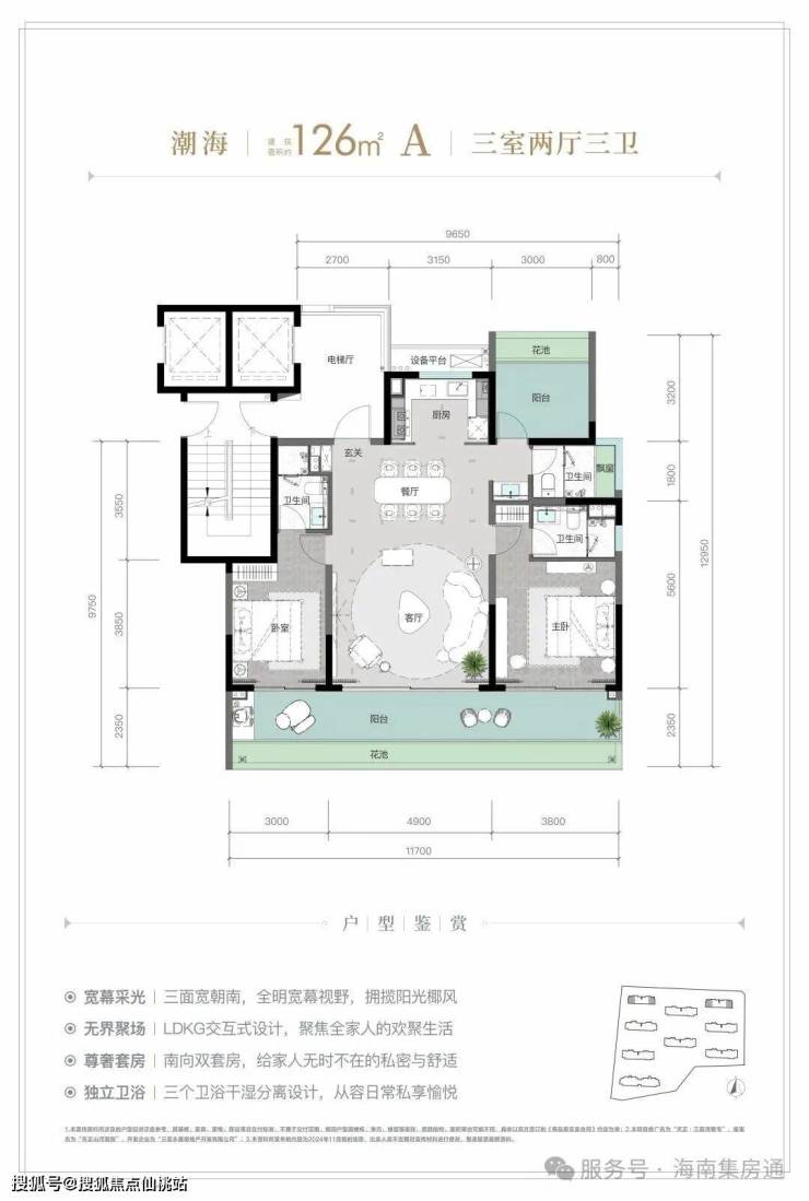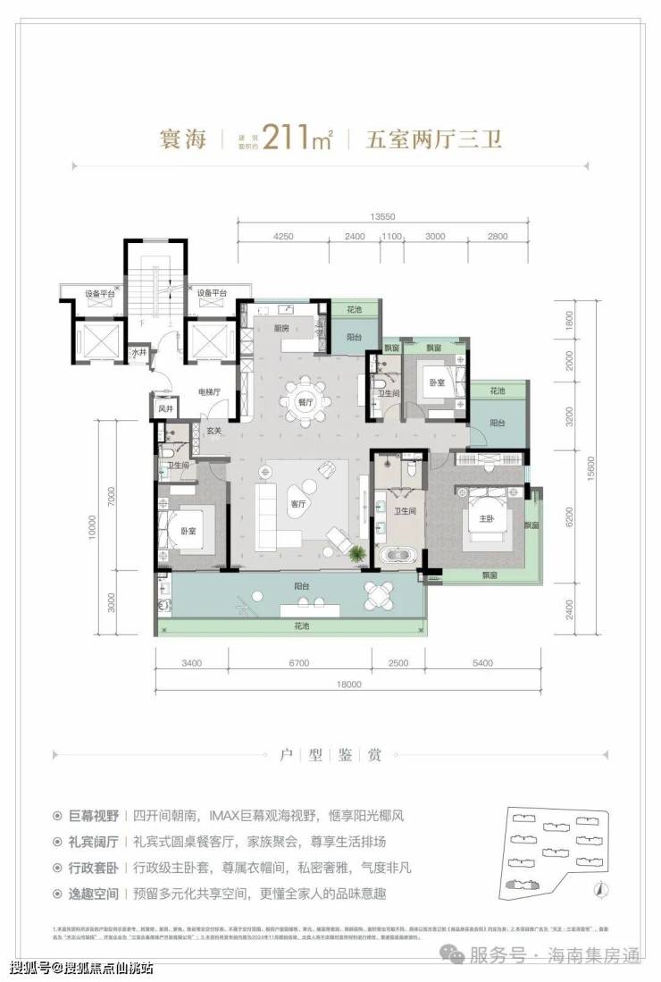 规划建筑面积约126-213㎡观海奢装大平层,约3.1米阔绰层高,部分户型创新设计270°全景飘窗主卧套、四开间朝南等,全成品高标奢装,营造全新舒居体验。