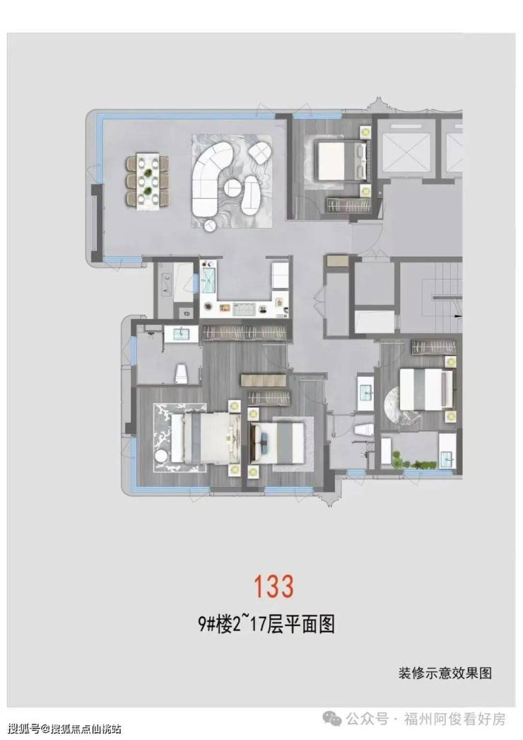 户型:130-227㎡ 三至五房,主力 167-189㎡大平层,纯改善定位