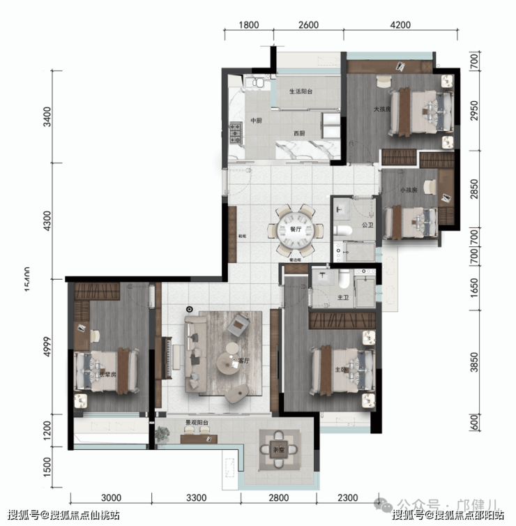 建面约75~149㎡二至四房,超90%高利用率空间,灵动户型选择多
