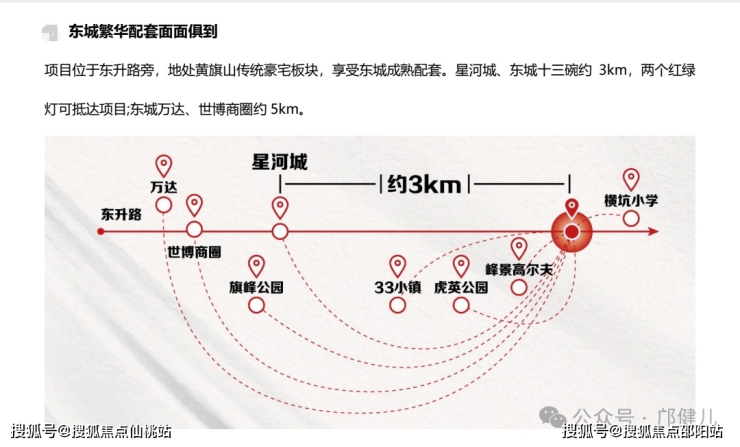 星河城、东城十三碗约3km,两个红绿灯可抵达项目;东城万达、世博商圈约5km。