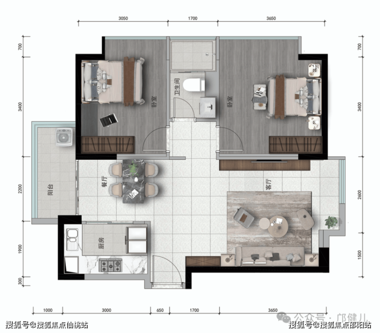 如上述提到的2室1厅1卫 75㎡户型总价为170万。