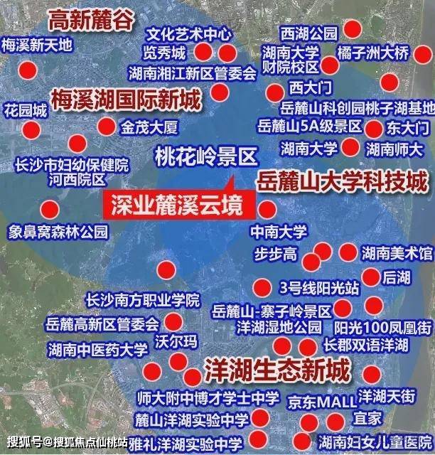 从深业麓溪云境到中南大学西门最近的直线距离仅约600米左右,堪称大学后花园,
