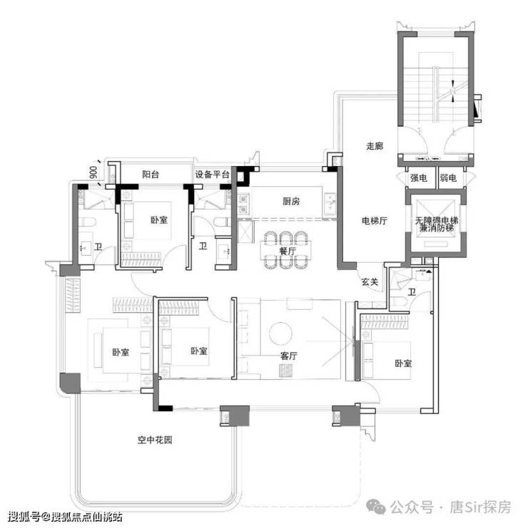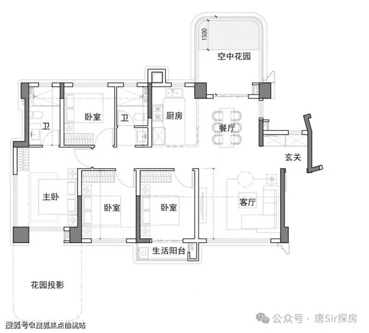 主卧配备超大空中花园(鲤悦的升级版),次卧及客厅还有超长的跑马阳台。