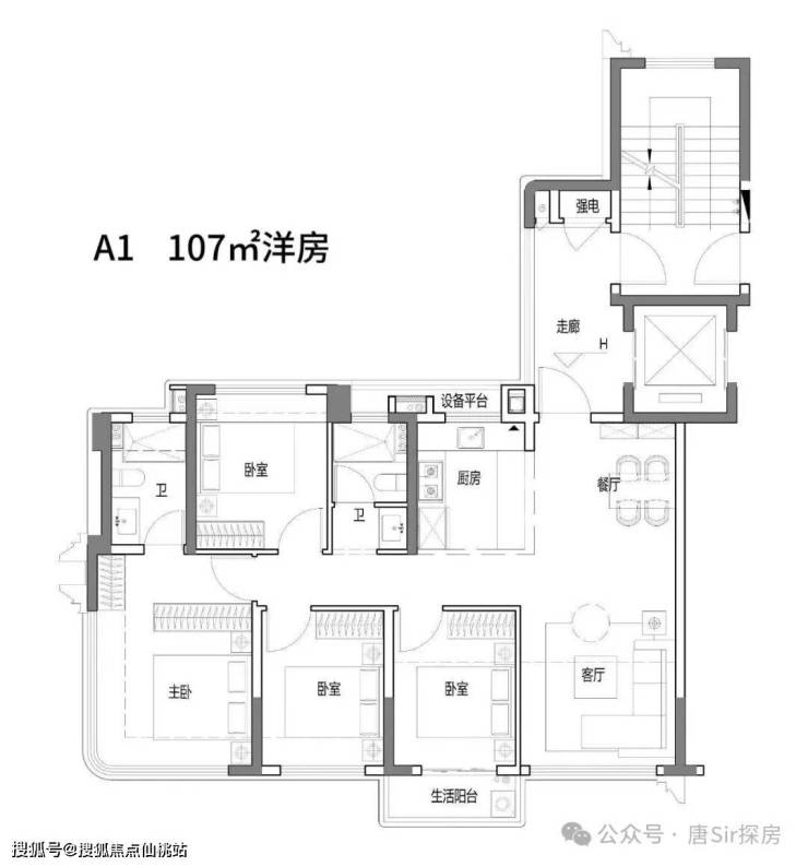 没有洋房的感觉,像高层户型。鲤悦97㎡的洋房户型比这个好太多。