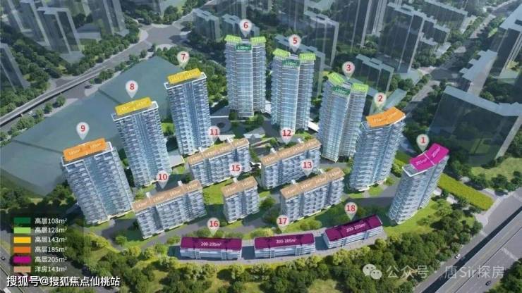 高层为108+128+143+185+205㎡,洋房为143㎡,叠拼为200㎡。