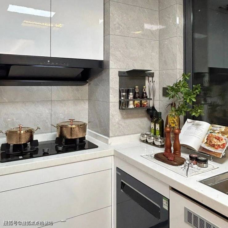 U型空间设计,放菜区、洗菜区、切菜区、炒菜区形成流水线式的合理排布,同时引入小米智能家电,小米智能燃气灶和油烟机的联动设计,油烟机自动跟随燃气灶开关,在烹饪时无须担心油烟问题,带来前所未有的烹饪体验,智能洗碗机可以通过米家 APP 远程控制,支持 24 小时预约,让家人轻松享受餐后的惬意时光。