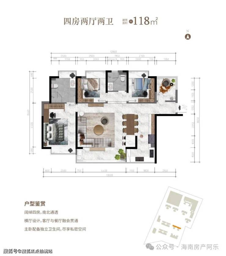 四房两厅两卫 建面约118.8㎡