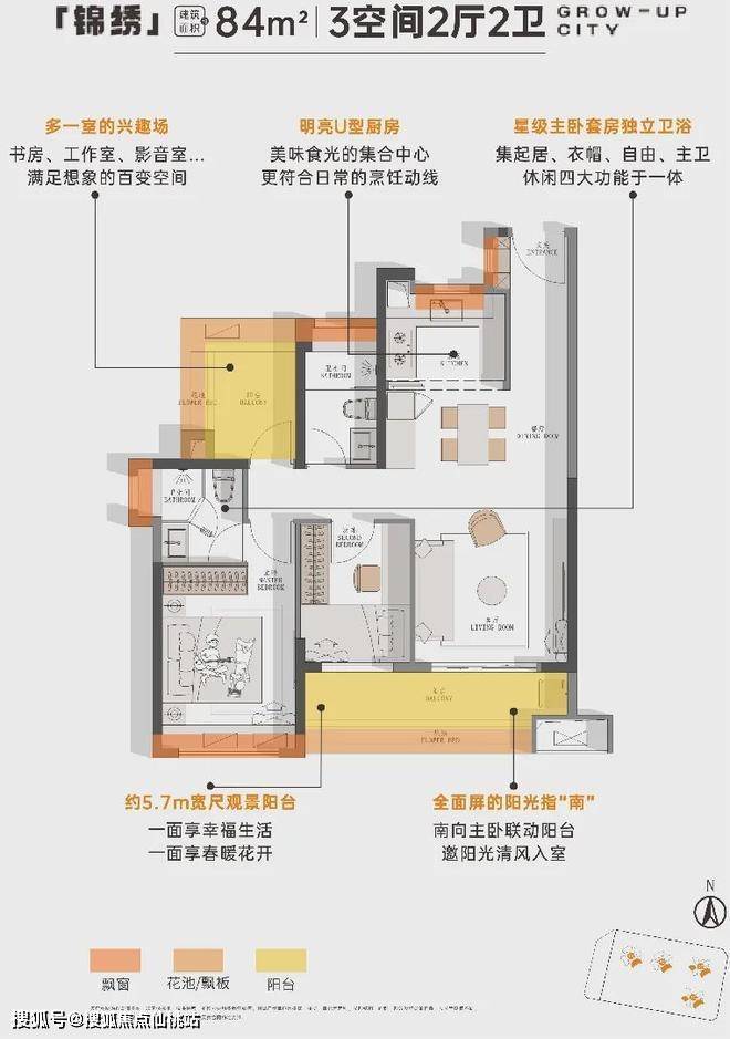 76㎡丨年轻人主城首选 南向三空间带主卫