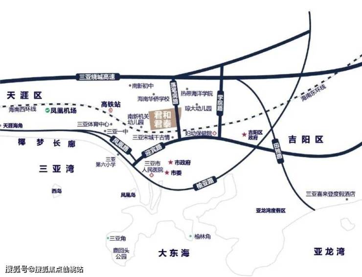 君和君泰项目位于三亚环城高速荔枝沟出口处(琼州学院对面),属于政府重点规划的月川—荔枝沟—抱坡岭片区,该区域重点规划定位为文化教育、商业贸易核心区;由学府教育区、公共服务区、行政商务区、生活配套区、文化商业区及品质居住区所组成。