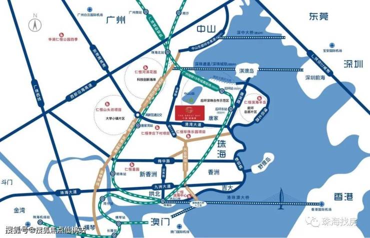 项目拥1站(珠海北站)、3轨(广珠城轨、深珠城轨、广州地铁18号线)、3桥(深珠通道、深中通道、港珠澳大桥)、2快线(兴业快线、金琴快线),湾区超级交通枢纽中心,约30分钟达前海,约1小时达白云机场。