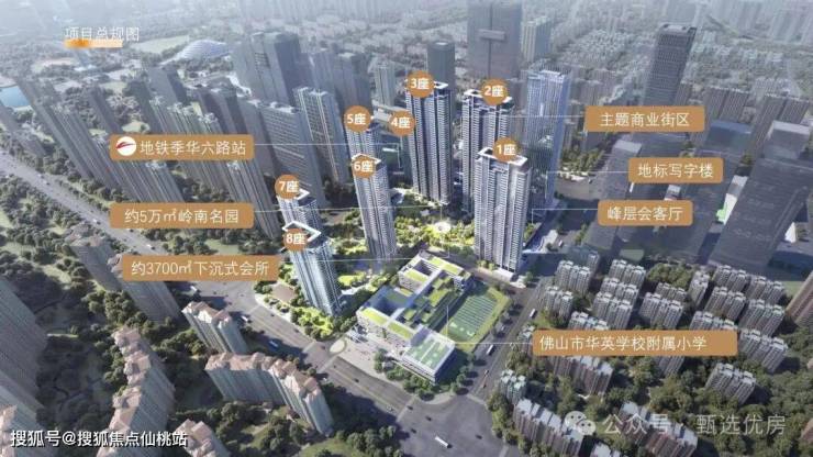 教育阵容:省市一级学府聚集:项目东南侧为华英学校附属小学(已开学),毗邻佛山市实验学校、佛山华英学校等卓越教育资源;交通枢纽:坐享佛山地铁3、4号线(4号线在建),楼下无缝接驳【季华六路】地铁站(已开通),多维路网疾速穿行广佛城芯;繁华商圈:周边汇聚40多家中外金融机构,170多家境内外企业总部,约20个大型高端商业广场;(数据来源于佛山乐居https://mp.weixin.qq.com/s/v8iZ-VkRr3XgbWu1H0XZEA)齐全医疗配套:项目2.1公里可达佛山市第一人民医院,5.5公里范围内包含佛山市第二人民医院、佛山妇幼保健院、佛山市中医院、禅诚复星医院等三甲医院,更与禅诚复星医院签订战略合作协议,享禅医定制VIP服务。