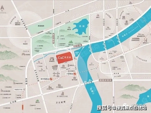 项目位于宋城旁,九溪玫瑰园正南面,直面一线钱塘江景,背靠西湖群山,以生活共融体、共融商业、LOFT和平层三位一体的大型城市融合体定位,承载趋势青年对理想的热爱。