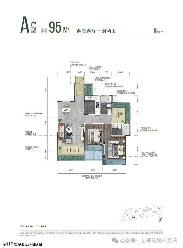 项目首开的2号楼推出95㎡2+1房与123㎡3+2房两大户型,其中藏着不少极具吸引力的亮点!
