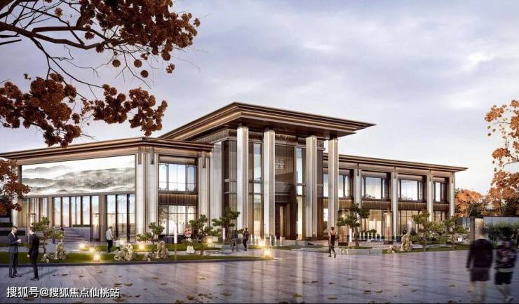 宫灯辉映之中,示范区建筑稳然坐落,高大门庭,巍巍大气,精制匾额,门楣之光,将建筑风骨、家族礼风与时代风华篆刻在府门之上,尽显尊崇。建筑主体采用仿铜铝板与米白石材质,辅以高透玻璃,巍峨壮丽之间流露出含蓄雅致质感。