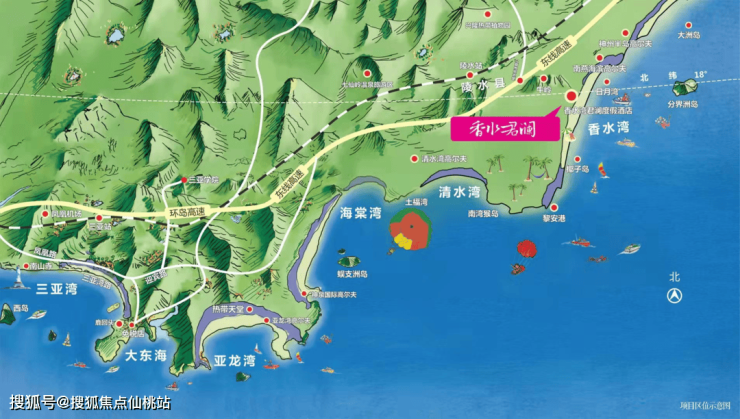 • 交通:距离三亚凤凰机场仅85公里,车程一个小时,乘坐环岛高铁仅二十分钟可以达到三亚站,同时项目距离陵水高铁站仅10分钟车程,距离海口市区约182公里,车程约90分钟