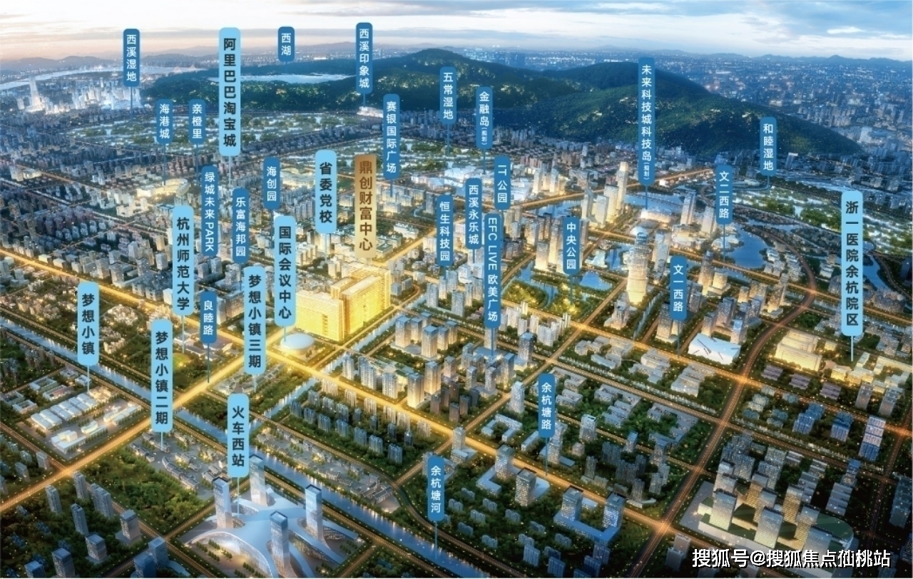 2、未来科技城宇宙中心、与梦想小镇、阿里巴巴全球总部、国际会展中心、海创园、欧美金融城、杭州西站枢纽 、浙一总部做邻居