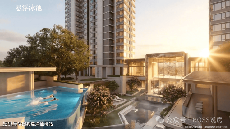 酒店式会所:引入板块首个酒店式会所,采用大面积玻璃幕墙设计。会所内规划有品质会客区、健身休闲区、雅致休憩区、游泳池等功能空间,为业主提供专属的高端休闲场所。