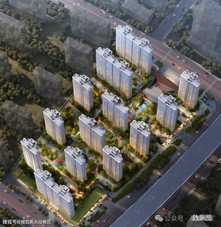 建筑概况:布置了13栋限高80m的高层住宅和几栋底商