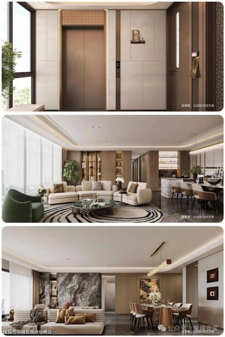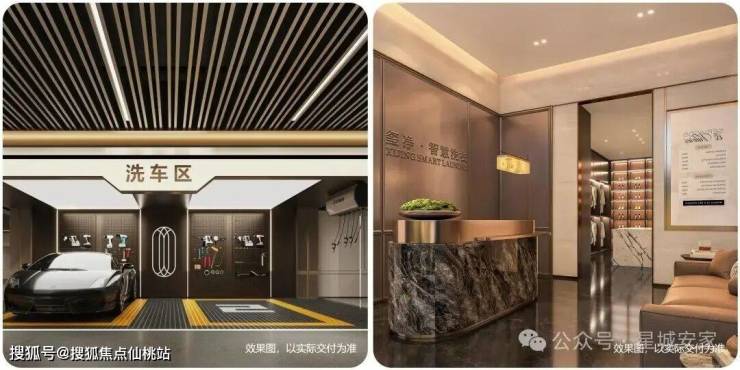 室内效果图展示了公区一些墙砖、香槟色不锈钢、墙挂木饰面等材料。