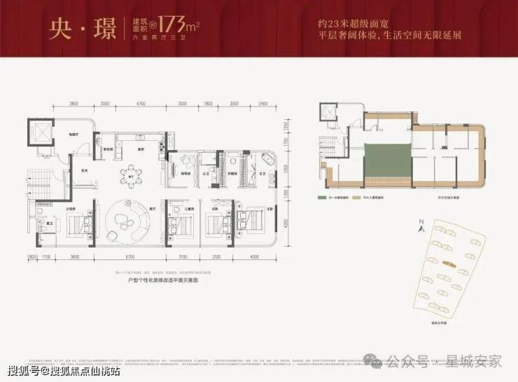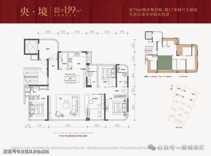 产品面积:两梯两户,户型面积约118、139、173㎡