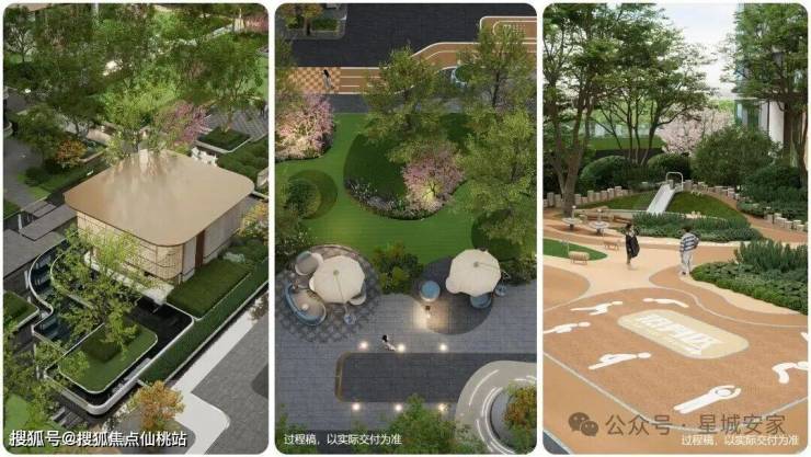 从园林效果图上看,布置了一些儿童活动设施、休息设施。每个小区都会有,没有什么特别的亮点。