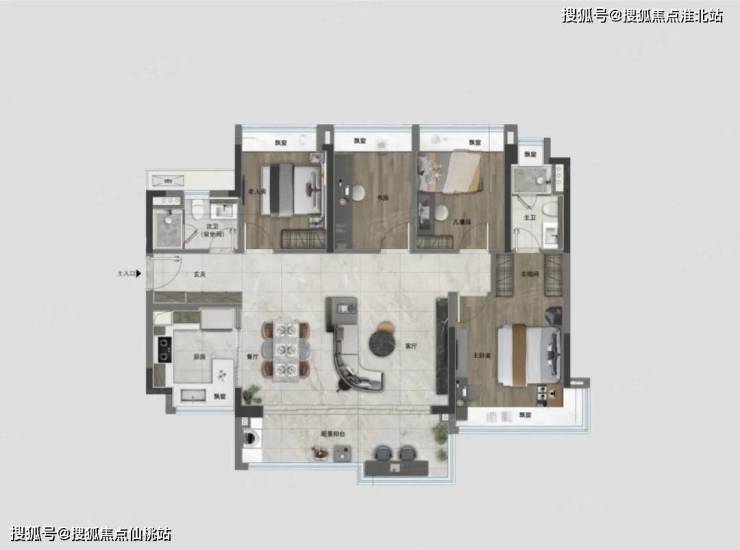 LDKB一体化、创新大通厅的设计,尺度感堪比市面上建面约200㎡的户型。这个阔度,让你无论是家族欢聚还是宴请宾客,都非常从容,尽享居家生活的多姿多彩。