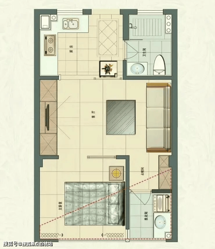B户型 建筑面积44.88㎡一室一厅一厨一卫