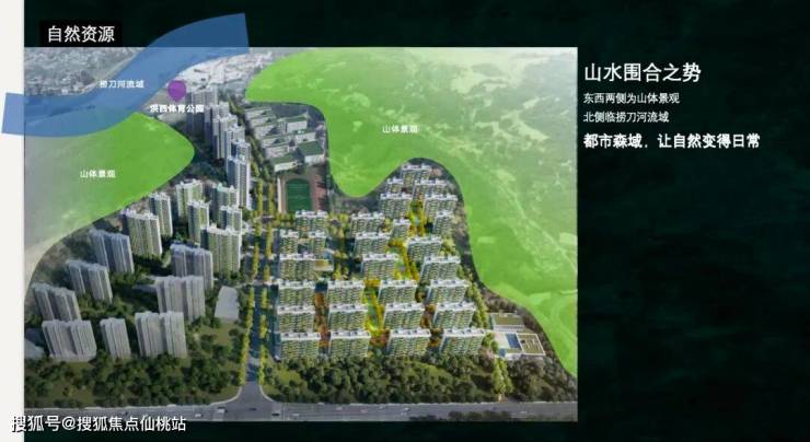 项目南临约1003亩月湖公园,西靠500亩生态山体麓峰山,北靠捞刀河风光带和苏托垸生态湿地,坐拥IMAX山景,远眺千米滨水河岸风光,超级绿肺举步即享,繁华都市里的静谧“桃花源”。