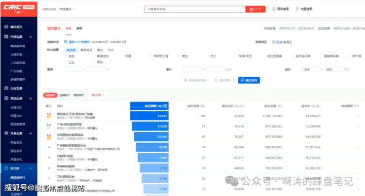 (数据来源:克而瑞 | 2024.10.1-2025.10.31 | 1000-4000万总价段成交面积排名)