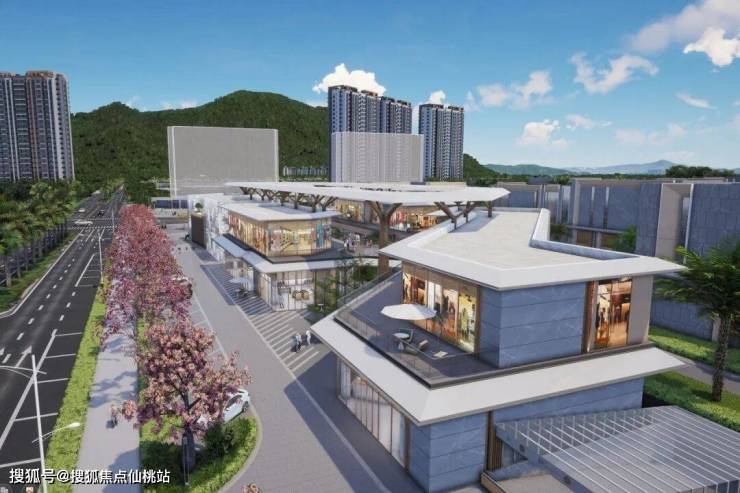 在场地的中心位置我们设置了面积约3000㎡的商业中心广场,整个空间轮廓设计从“滨海流线”元素挖掘灵感,巧妙利用“弧形海岸线”的隐喻来串联起整个中庭空间的形式与功能,从天空俯瞰下来呈现“水纹“的律动,营造亲切松弛的街景氛围。同时融合椰林等景观设计“虚化边界”的手法,让商业氛围自然的渗透至中庭街区,形成“公共-休憩-商业-自然”的柔性过渡。