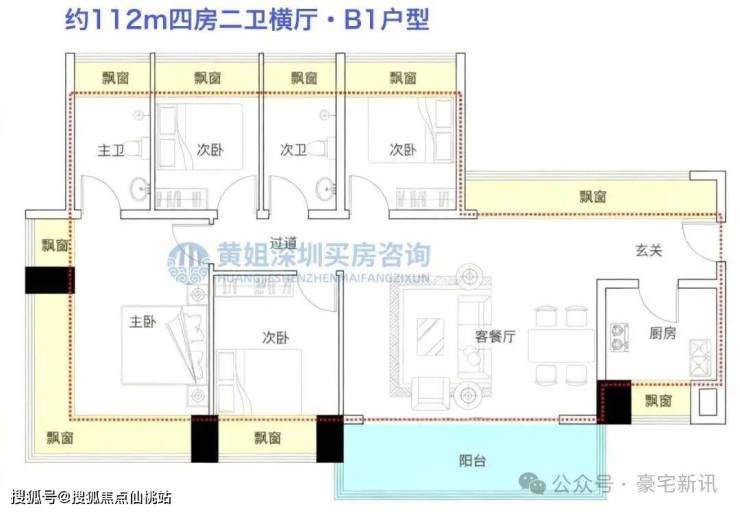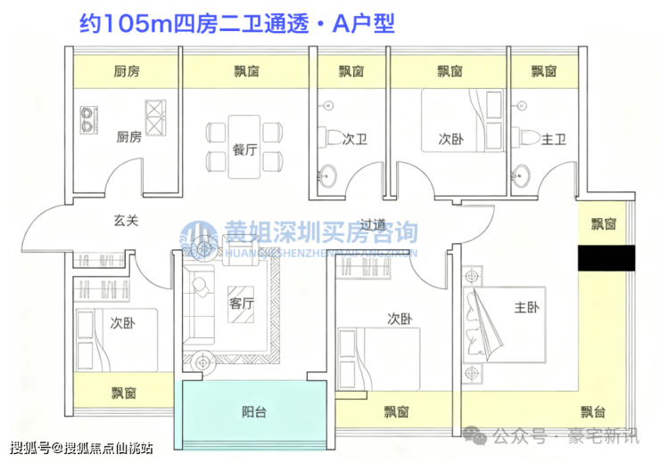 项目规划为纯四房产品,户型面积约105-188㎡,全部为精装修交付。