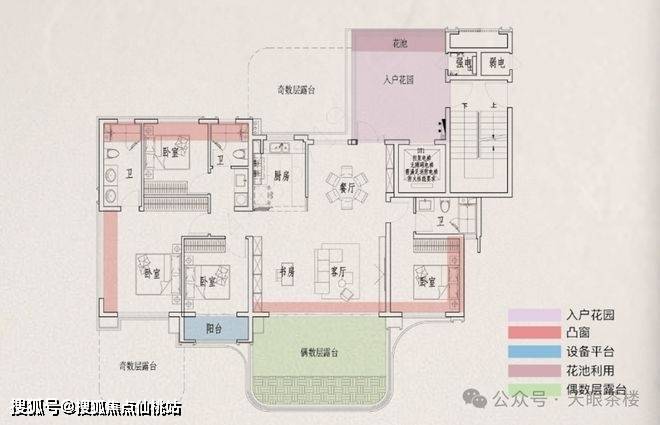 约143平四代宅:约127户型的放大版,综合使用率118-120%,堪比传统220㎡大平层空间感,客厅面宽达约6米,可作5房3卫双套卧!奇数层南北双露台约38平,偶数层南向露台约23平,约22平超大入户花园,再加南向还有外阳台,空间感拉满,生活方式可随心定制!主卧还是双台盆设计!