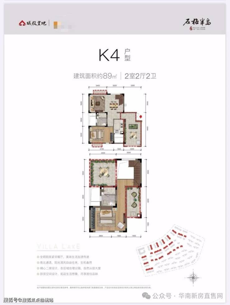 K4户型,建筑面积约88平米,两房两卫(复式,上下两层),赠送楼台40平