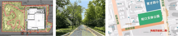 项目场地内设置了健身跑道并与景观绿化设计相结合,打造舒适的室外健身环境。此外,将主要人行出入口设置在与蛇口文体公园距离较近的位置,共享城市公共健身设施。