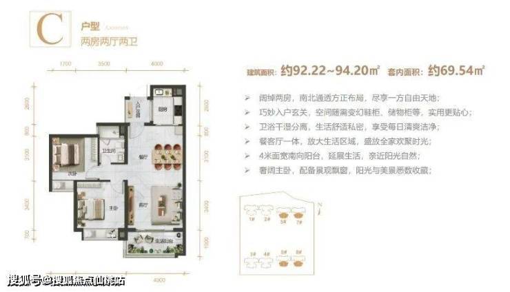精心设计建面约92-102㎡两房至三房,两梯四户,保障业主私密性;南北通透方正布局,采光通风好,功能分区合理;阔绰餐客厅从容待客,大面宽阳台户户赏景,品质精装,礼遇美好生活。
