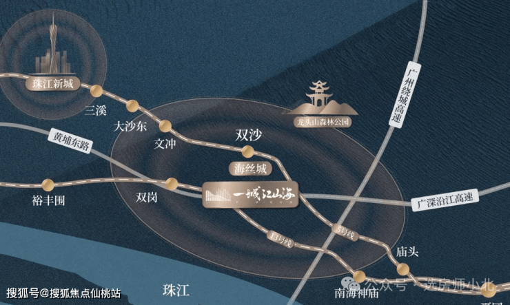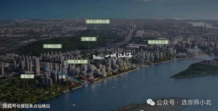拥揽珠江一线景观、关键还是南向望江,这是连琶洲都做不到,还背靠5000亩龙头山森林公园,南望珠江水,山水相依,所开发地块约90%界面朝向公园,打造 300 米见绿,500 米见园;加上片区规划“5+9”的“公园城市”,一流生态环境实现出门即入园