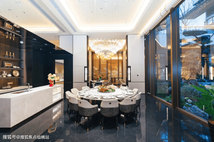 小区内部的配套。项目没有刻意营销社区的超配感,实际上该有的排面都有。比如,三重归家中式环岛大门,仪式感拉满;采用蓝翡翠奢石的公区,用料扎实;引进国家一级物管品牌融侨物业……