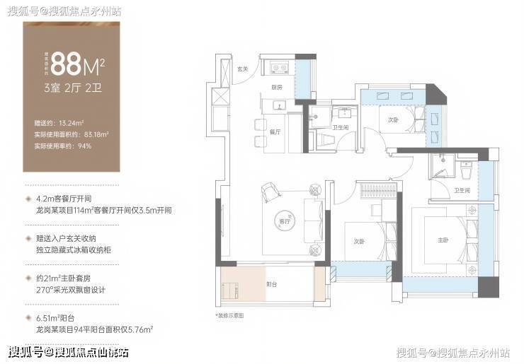 折后总价266万起,单价约3万/㎡,首付20万起。4.2米开间客厅,主卧套间设计,全屋飘窗,得房率94%,阳台西南或东南朝向。工抵房集中在1栋C座中高楼层(15-25层),单价2.8万/㎡,总价约246万,较备案价降幅30%。